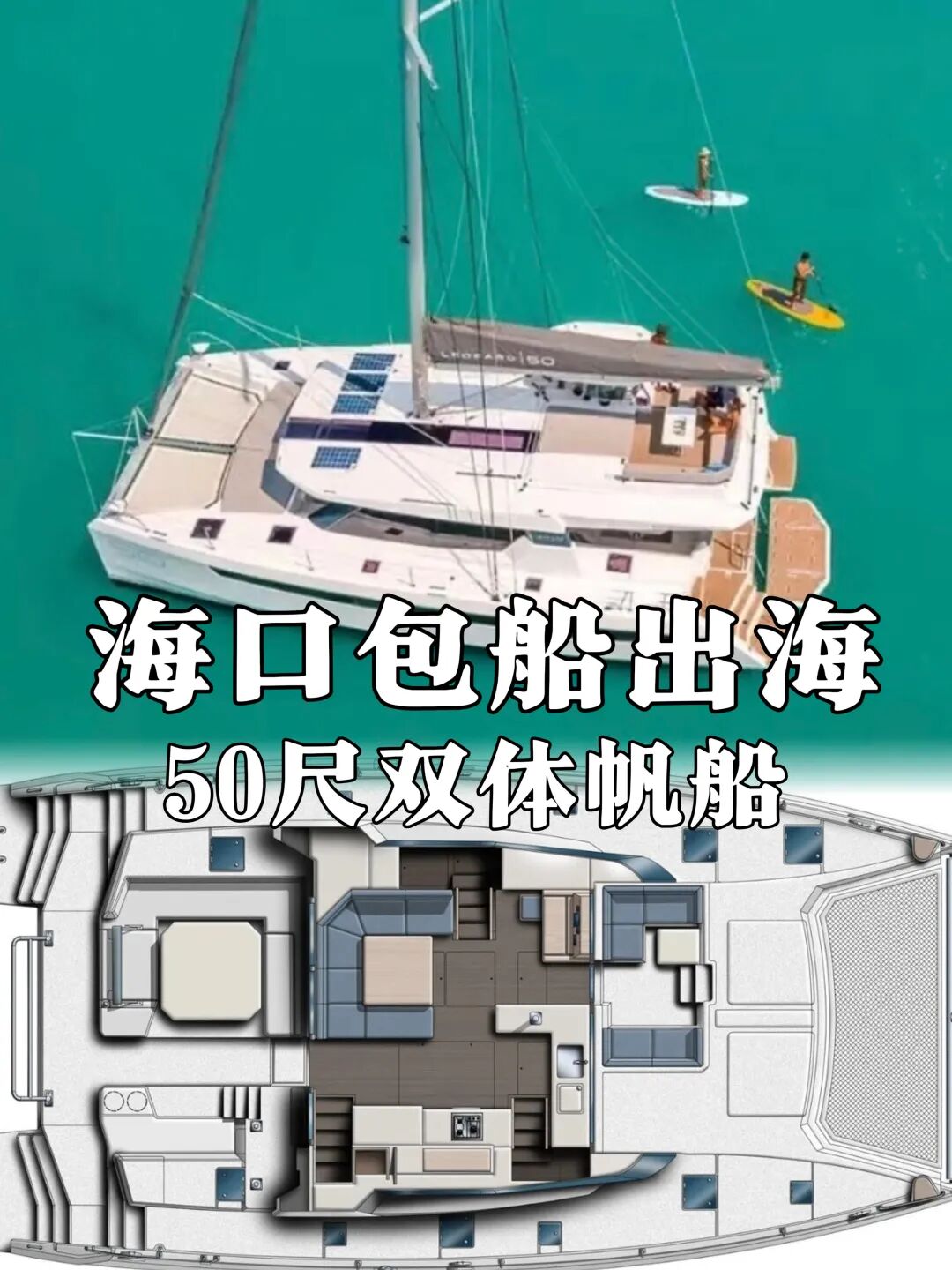 海口游艇包船出海新添一豪华50尺进口双体船